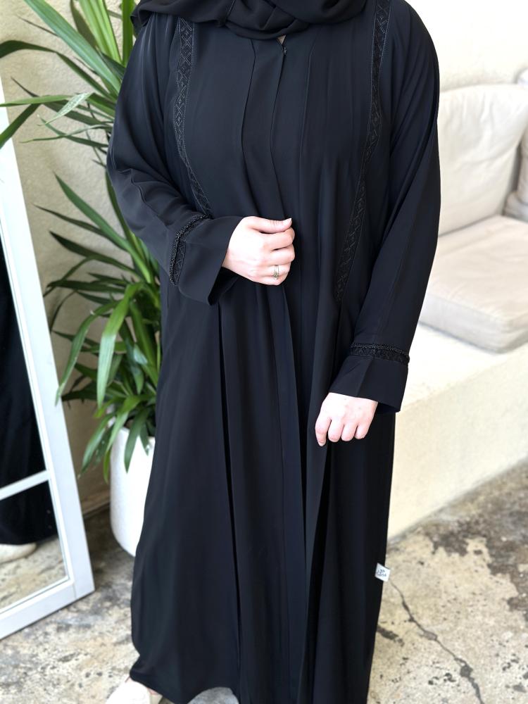 • عباية بكلفة طولية أنيقة على الصدر والكم.