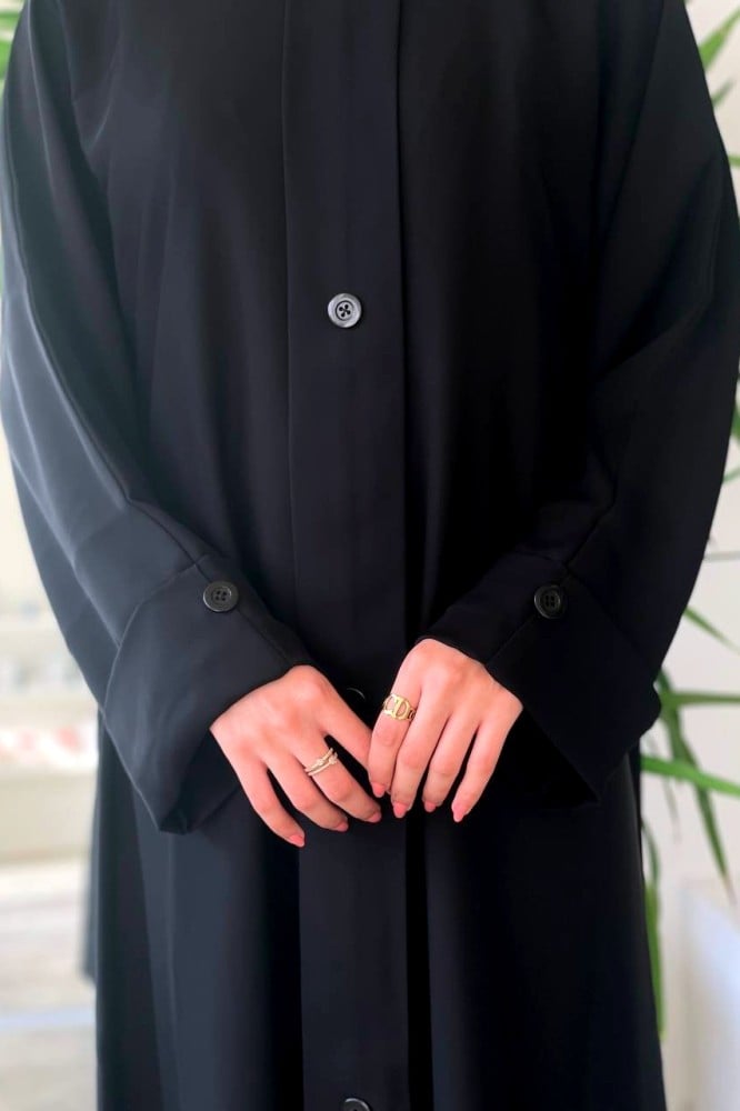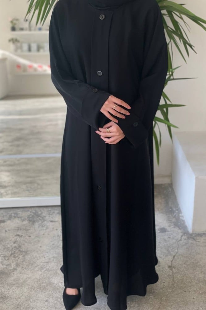 • الأزرار الأمامية الديكورية تضيف لمسة من الجمال والفخامة للعباية.